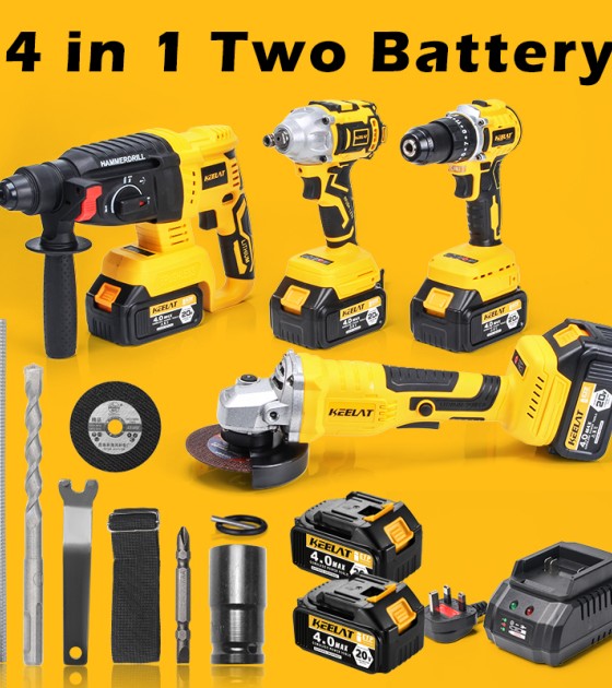 Multi-functional suit combination in one box which including Electric Wrench/Electric Drill/Electric Rotary Hammer/Angle Grinder,work together to make efficiency faster.