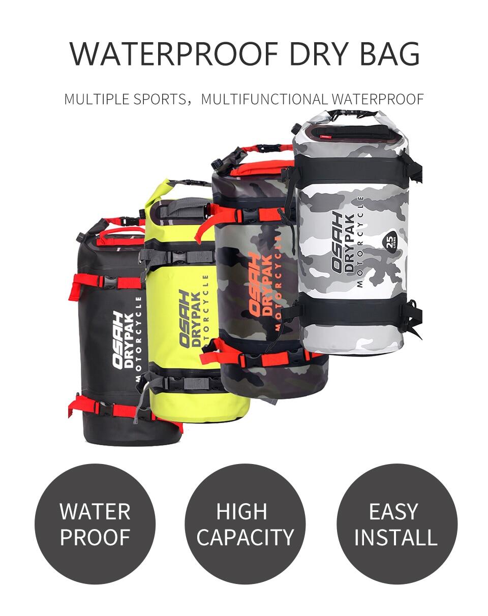 OSAH DRYPAK Motorcycle PVC Tail Bag Motorbike Motocross Waterproof Dry Luggage Outdoor Roll Pack Saddle Rear Seat Bag